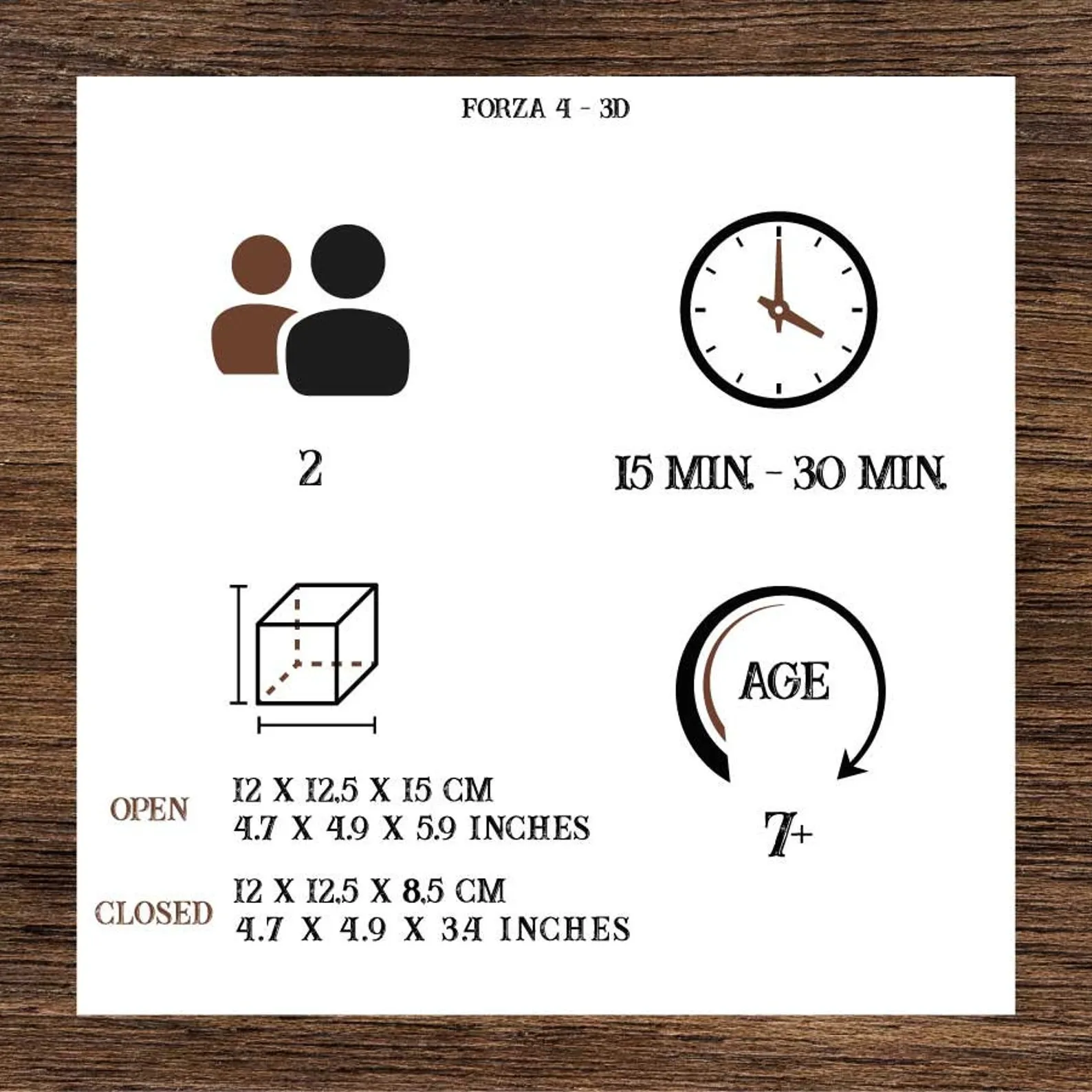 Four In A Row Three Dimensional Wooden Strategy Game is a vertical board game built from wooden components. A standing frame holds a grid where players slide coloured or contrasting discs into slots from the top. As pieces stack, they create lines that are visible from both sides, turning the game into a small three dimensional object that looks appealing on a table.